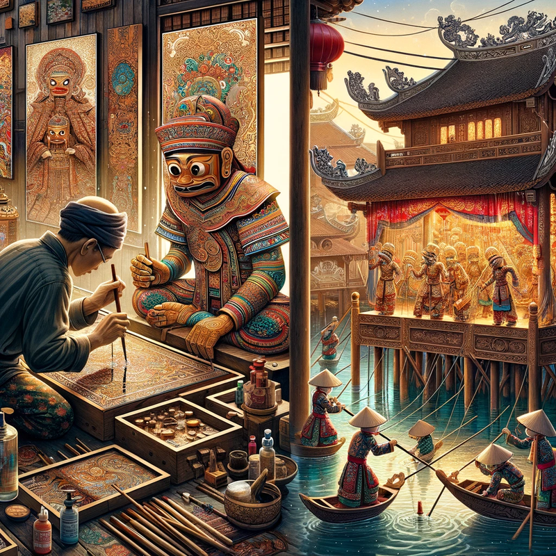 Vietnamese art is historically rooted in practices like lacquer art and water puppetry. Lacquer art, dating back to the 15th century, involves applying several layers of lacquer to create intricate and polished finishes. This art form is highly appreciated both locally and internationally for its aesthetic and complex craftsmanship. Water puppetry, which originated in the 11th century, is a distinctive Vietnamese art form that combines storytelling with a unique use of water as the stage, reflecting themes from Vietnamese folklore and daily life.